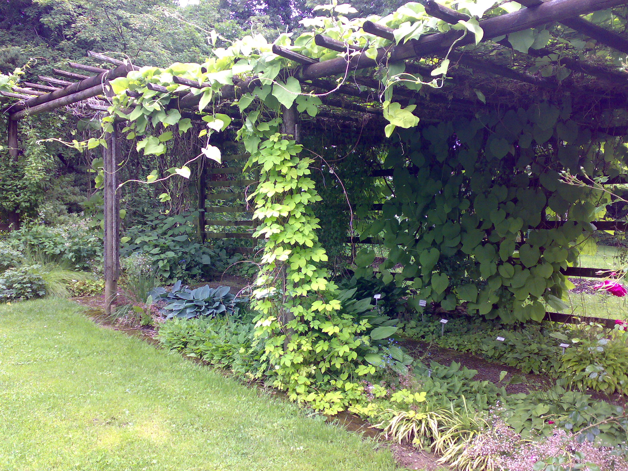 Hopfen findet abseits der Nutzung der Dolden mitsamt seiner Inhaltsstoffe auch im Ziergarten oft Verwendung.